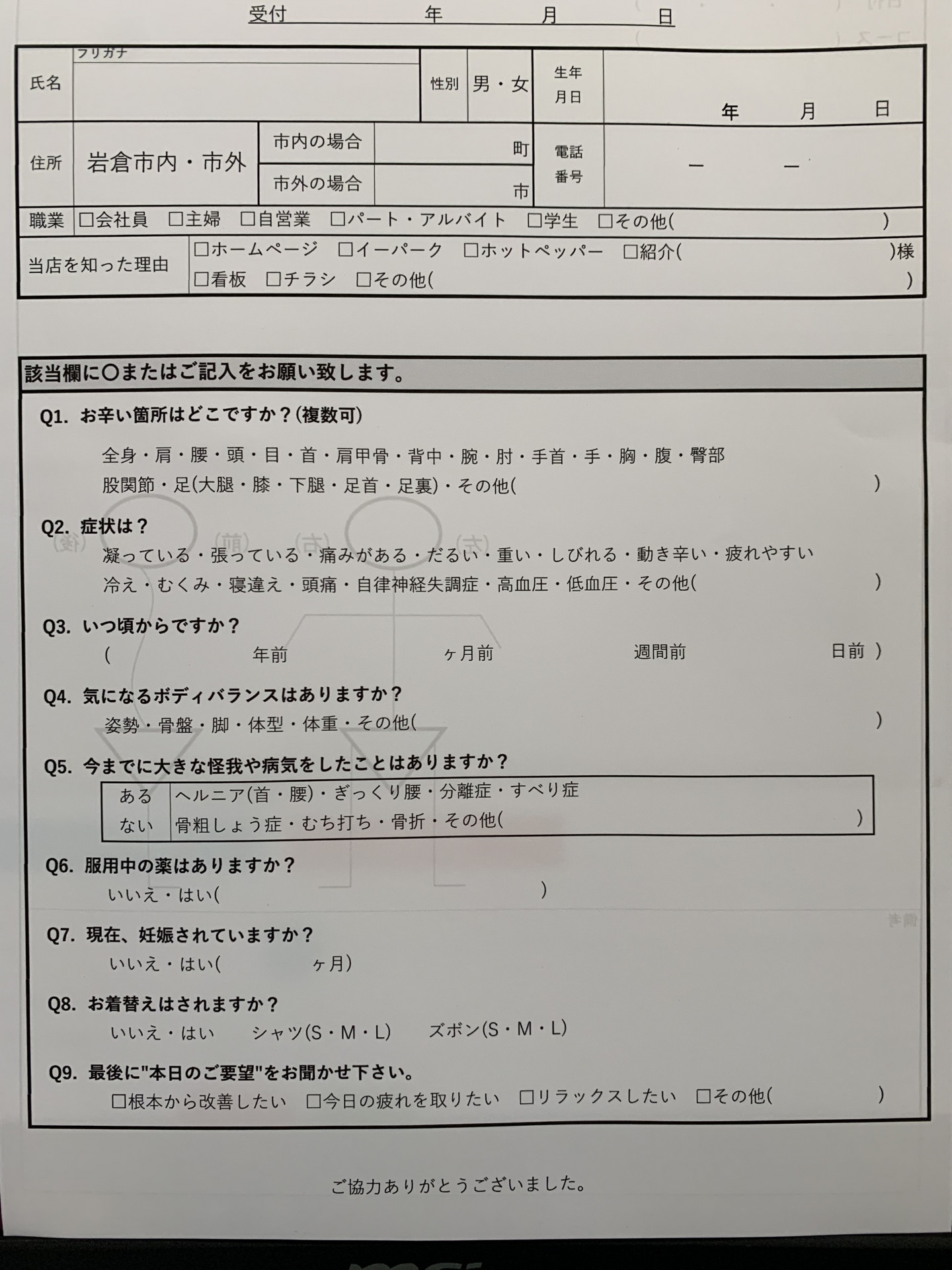 今回はいわくら大野整体院が初回のお客様に行っている施術の一連の流れについて紹介していきます。